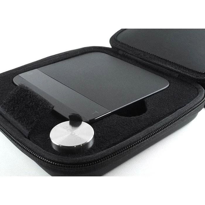The Acaia Lunar Carrying Case is a travel case for your Lunar scale, designed to carry the scale, 100g Calibration Weight, and USB cord.