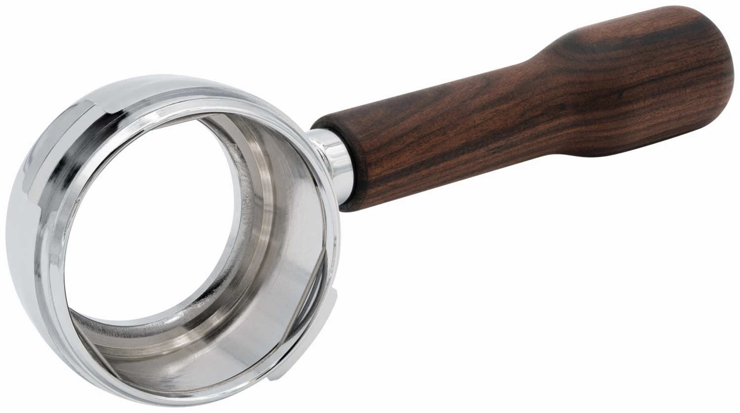 Constructed out of chrome plated brass and equipped with a beautiful wooden handle. Does not include filter baskets.