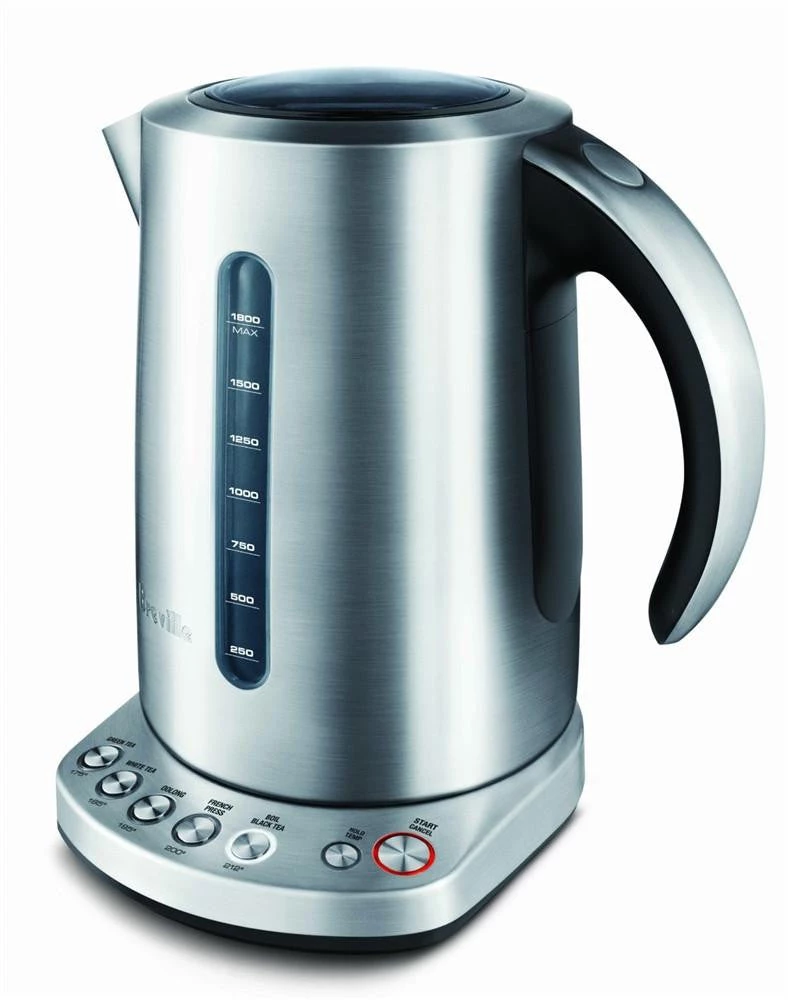 This 7 cup capacity kettle knows the ideal temperature for tea or coffee. 5 varietal settings brew at the right temperature for Black, Green, White and Oolong Tea and French press coffee.