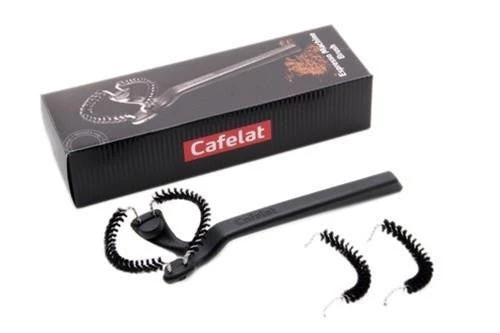 The patented Cafelat cleaning brush is designed to clean your espresso machine grouphead, in particular those hard-to-reach areas around the sealing gasket. The brush fits most standard commercial espresso machines and “locks” into the group just like a portafilter. Each brush box set comes with an extra pair of natural fibre brushes.