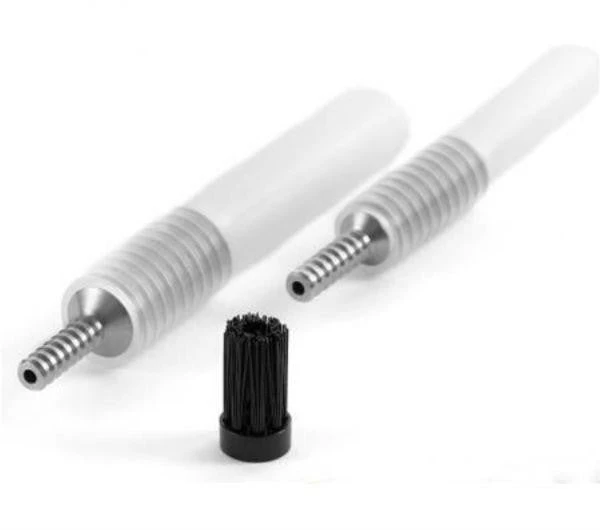Use the steam power to clean your espresso machine. The Concept Art Steam Powered Group Head Brush is an innovative barista tool that utilizes the power of steam for the fastest clean up. The brush that comes with three adapters can be connected to any steam wand and gives you a steady burst of steam to clean the group head and blast away those rock-hard coffee stains on your espresso machine or counter.
