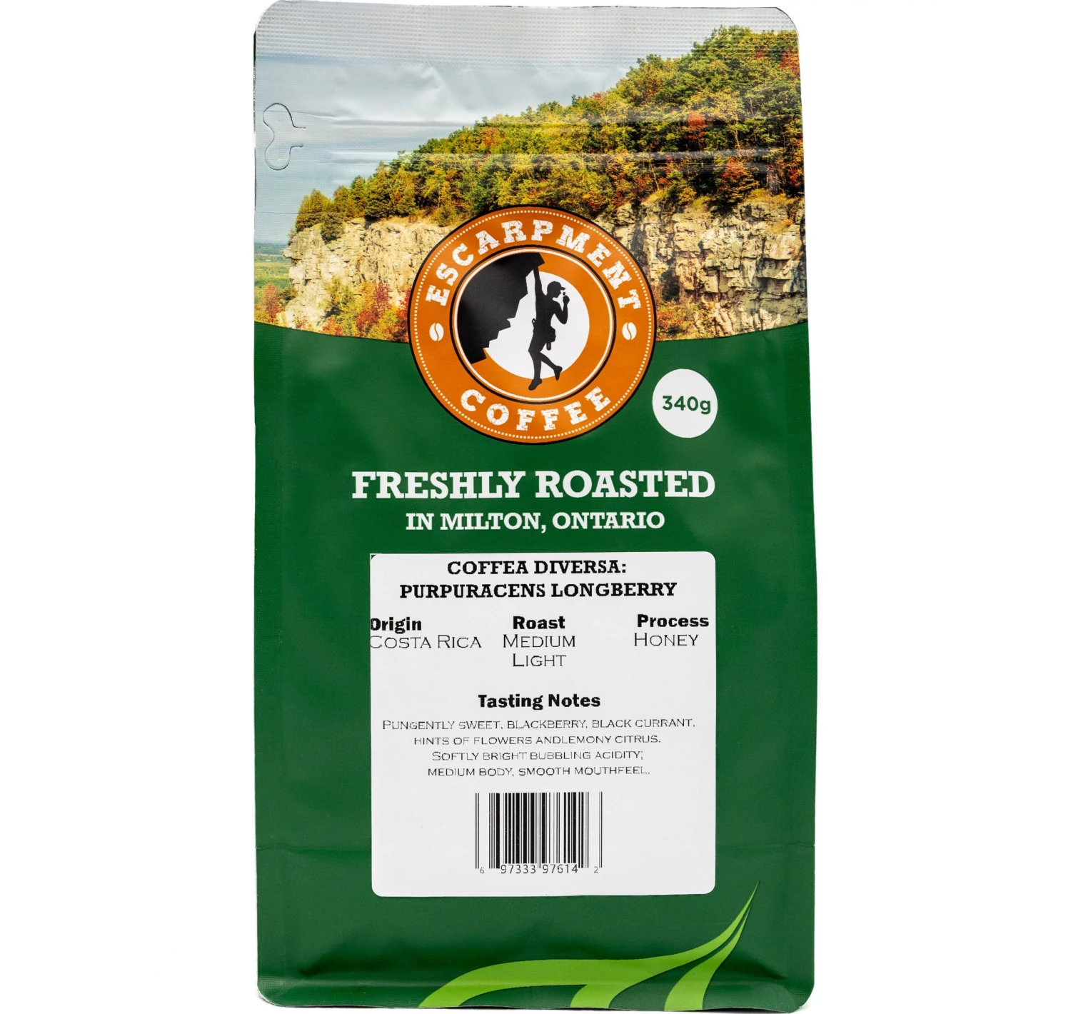 The Purpuracens Longberry’s flavour is pungently sweet. Crisp fruit dominates the profile: blackberry, black currant, hints of flowers and lemony citrus. Softly bright bubbling acidity; medium body, smooth mouthfeel. A clean and rich cup that finishes with a distinct flavour persistence: berry, lemon, flowers. This variety gets its name from its purple-coloured foilage.