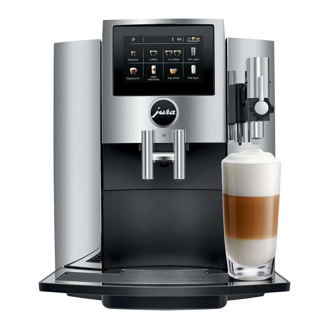 Characteristic JURA design reflects precision and quality down to the smallest detail. The new professional fine foam frother on the S8 is made from the highest quality materials and has a stunning look and feel. Specially designed for the preparation of speciality coffees with milk and milk foam, it makes latte macchiato and other beverages with the very best fine-textured foam ‘ every time. Graphics and modern animations on the display make it easier than ever to use.