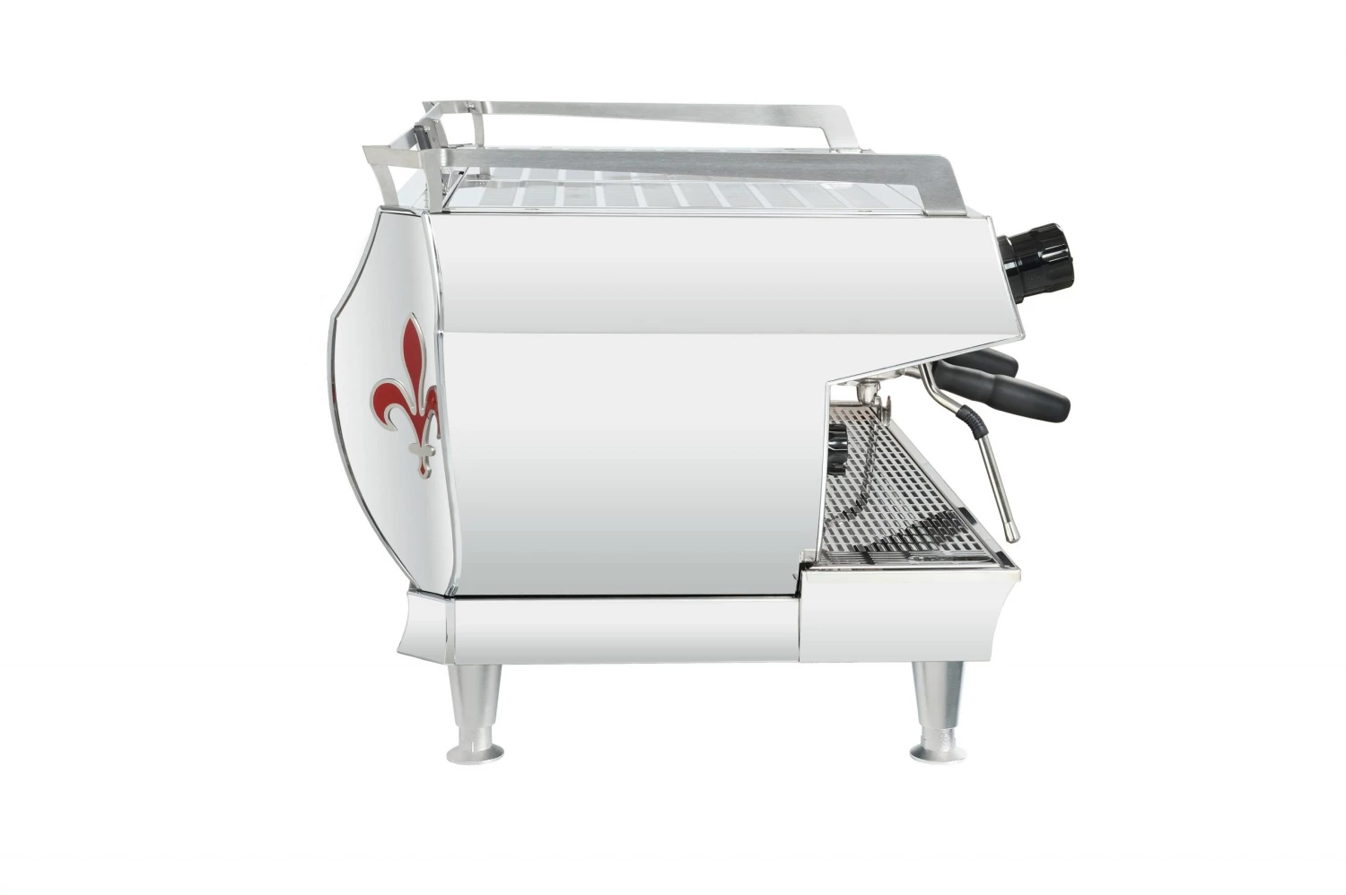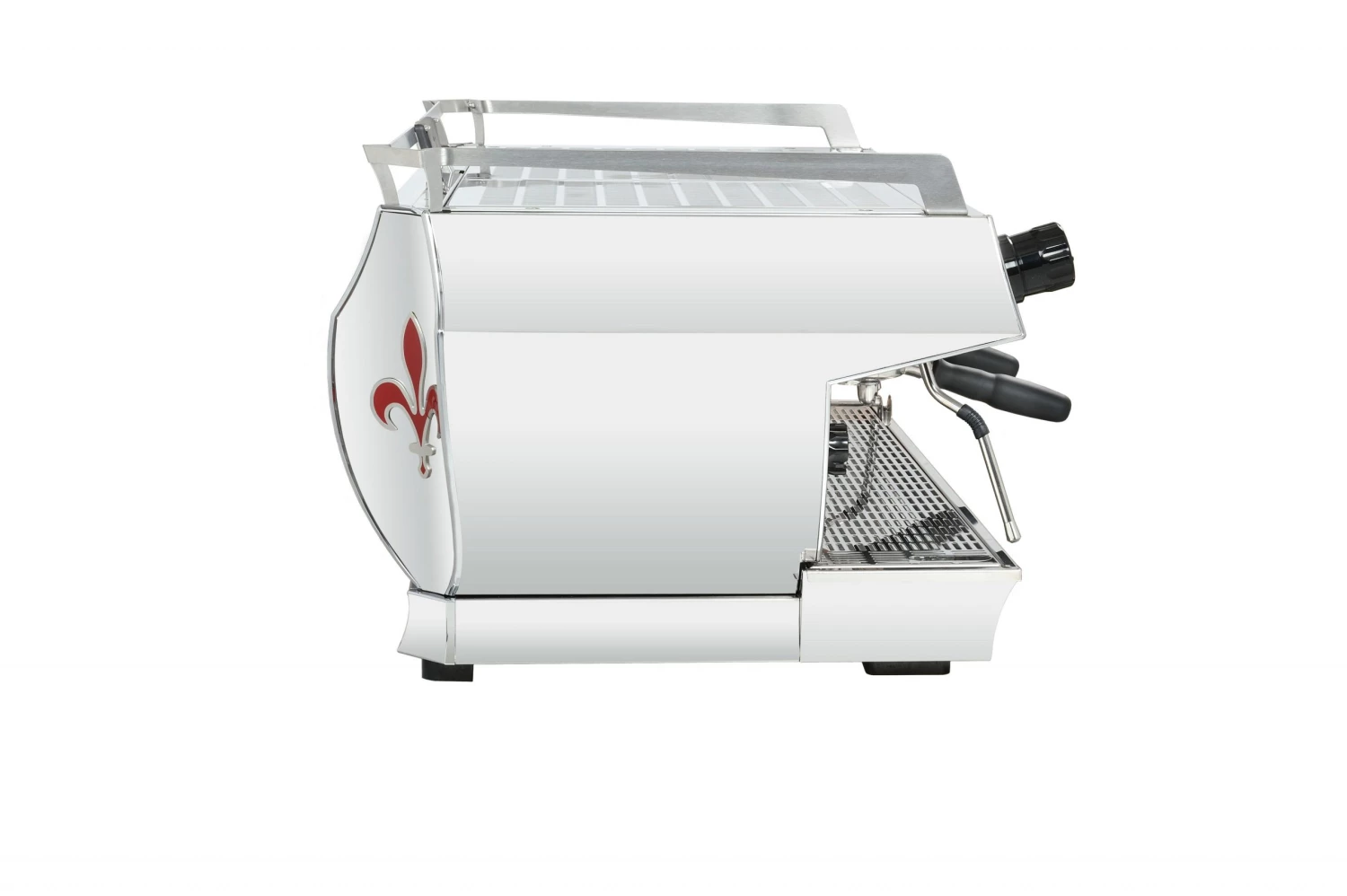 Two red lilies on side shields recall Florentine heritage, while the front panel has been redesigned to increase group visibility. the GB5 S is the first series of machines equipped with a water sensor that measures conductivity and hardness as it enters the machine; this information allows users to monitor water quality and verify filtration performance without the need for additional testing tools