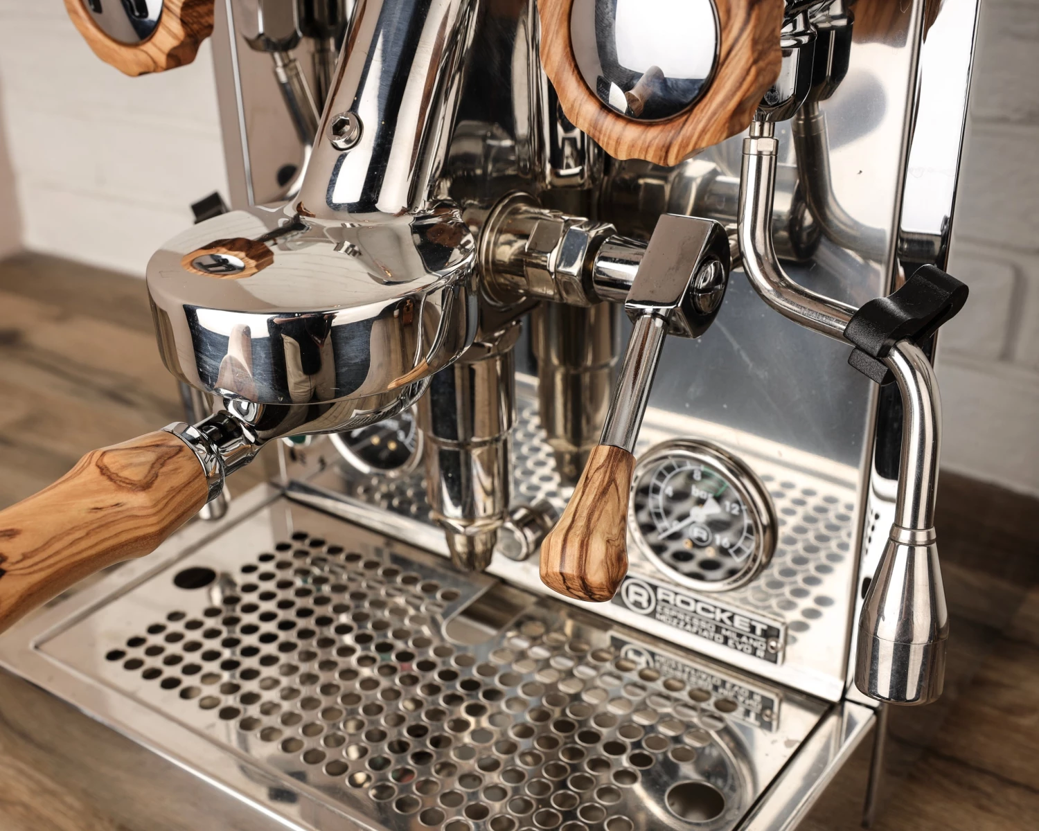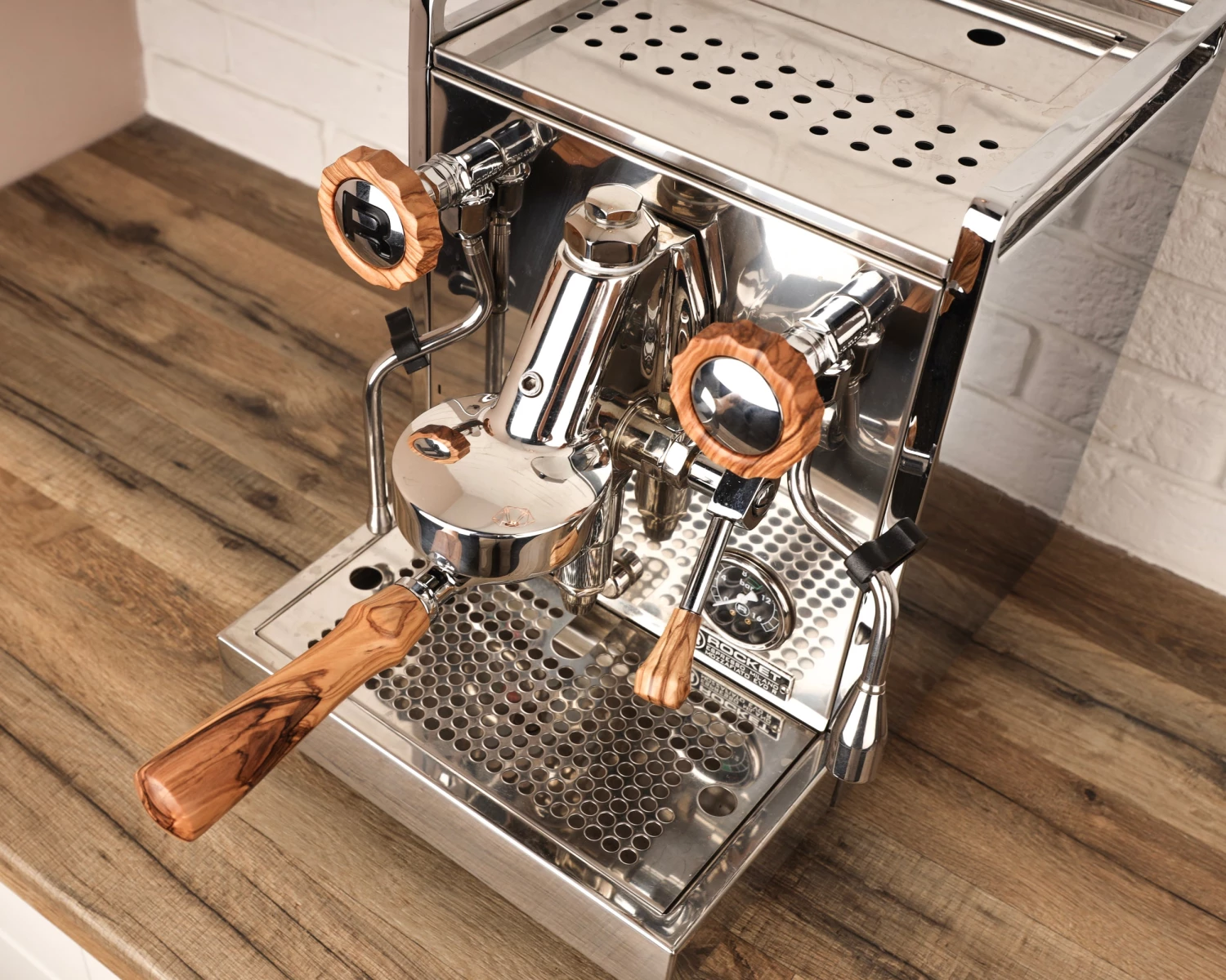 Premium handcrafted wooden accessories for your Rocket espresso machine. The set includes: