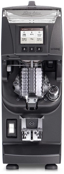 Mythos II introduces gravimetric dosing. This means the grinder doses the ground coffee by weight in real time. Eliminating the need for a scale and reducing coffee wast. This feature can also be turned off via the setting to dose using time.