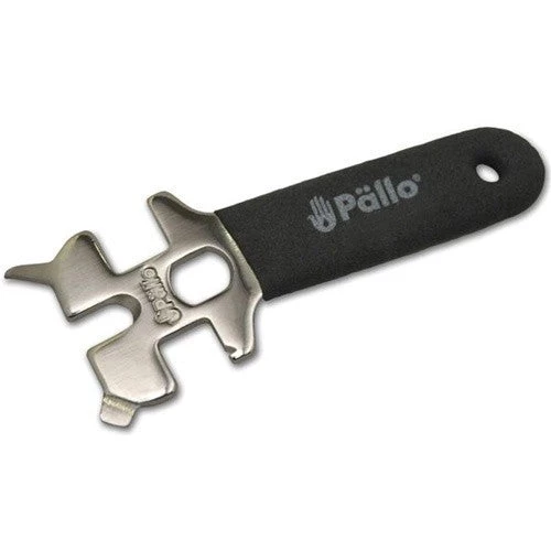 The Pallo Caffeine Wrench is a terrific multi-purpose barista tool. With tons of useful features it not only takes the place of wrenches, but screwdrivers, picks, and more. Three sides of the wrench feature 8mm, 12mm, and 13mm sizes to remove almost any steam wand tip with ease. The 8 mm wrench in the center also has a contoured wand scraper, perfect for getting rid of milk build up on the steam wand. On the left side, a filter basket pry/screwdriver makes it easy to switch out your double and single filter baskets, and it also works as a screwdriver to access your brew group for maintenance. A pointy gasket probe on the right can be used as a soft gasket puller on many groups, allowing you to regularly inspect the group gaskets. Plus, this versatile, handy tool is equipped with a black rubber handle for the ultimate in comfort and convenience.