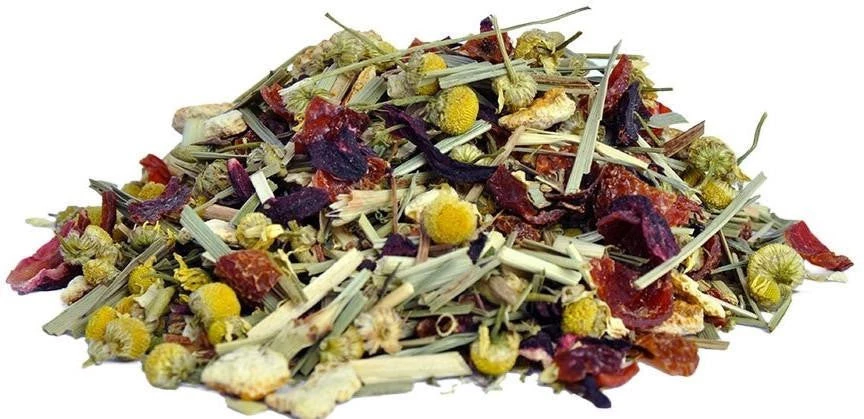 Soothing and calming caffeine-free herbal with sweet orange, lemon and chamomile flavours. One of our favourite night time blends. Ingredients : Rose hip, citrus peel, chamomile blossoms, lemongrass, hibiscus blossoms, natural flavour, spearmint.