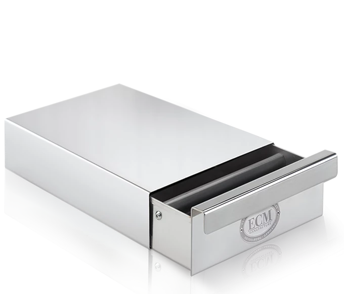 The ECM Knockbox has a uniquely functional design making it a perfect addition to your espresso brewing equipment collection.