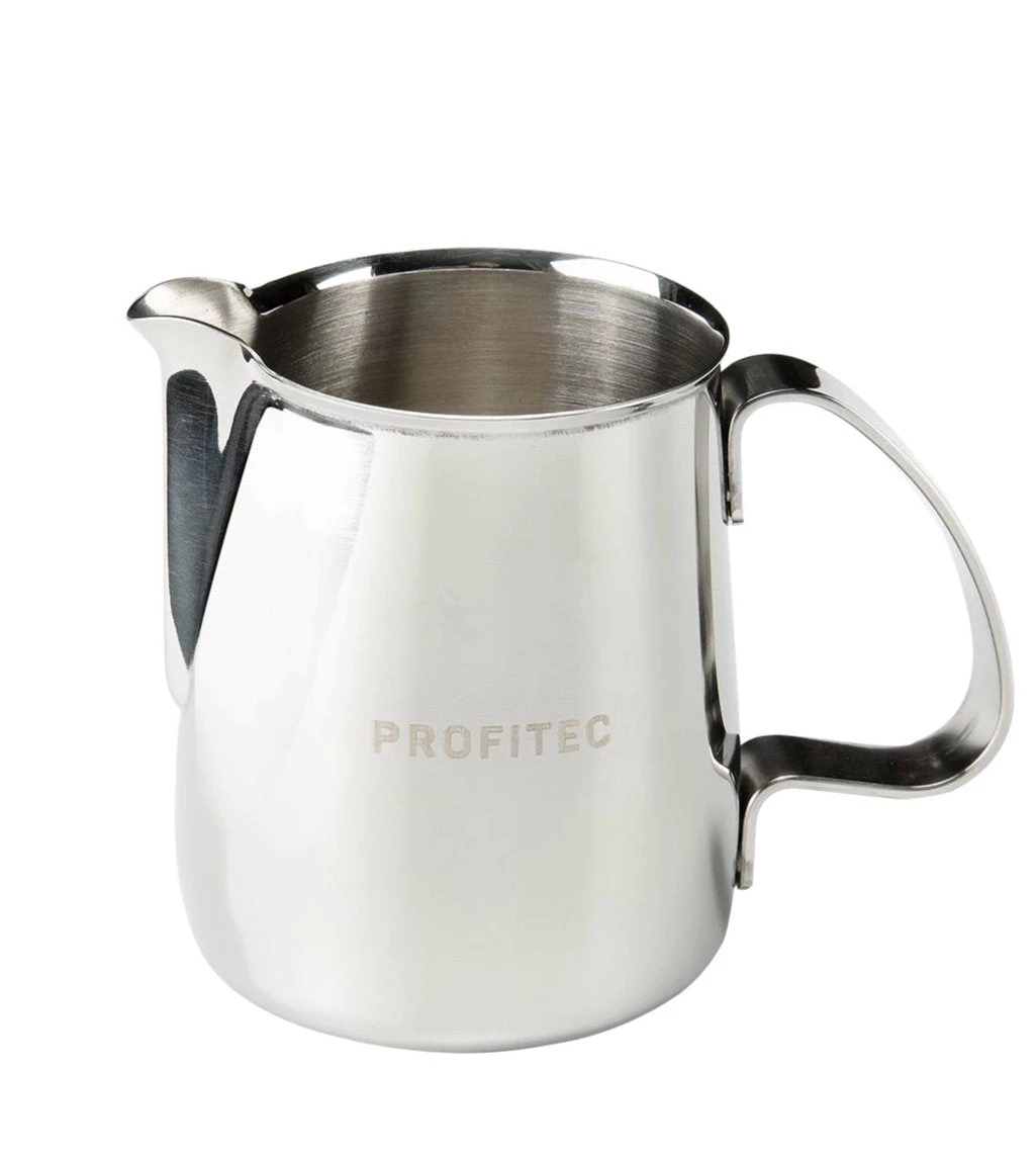The stainless steel Pro Milk Pitchers are available in two sizes: 350ml and 500ml.