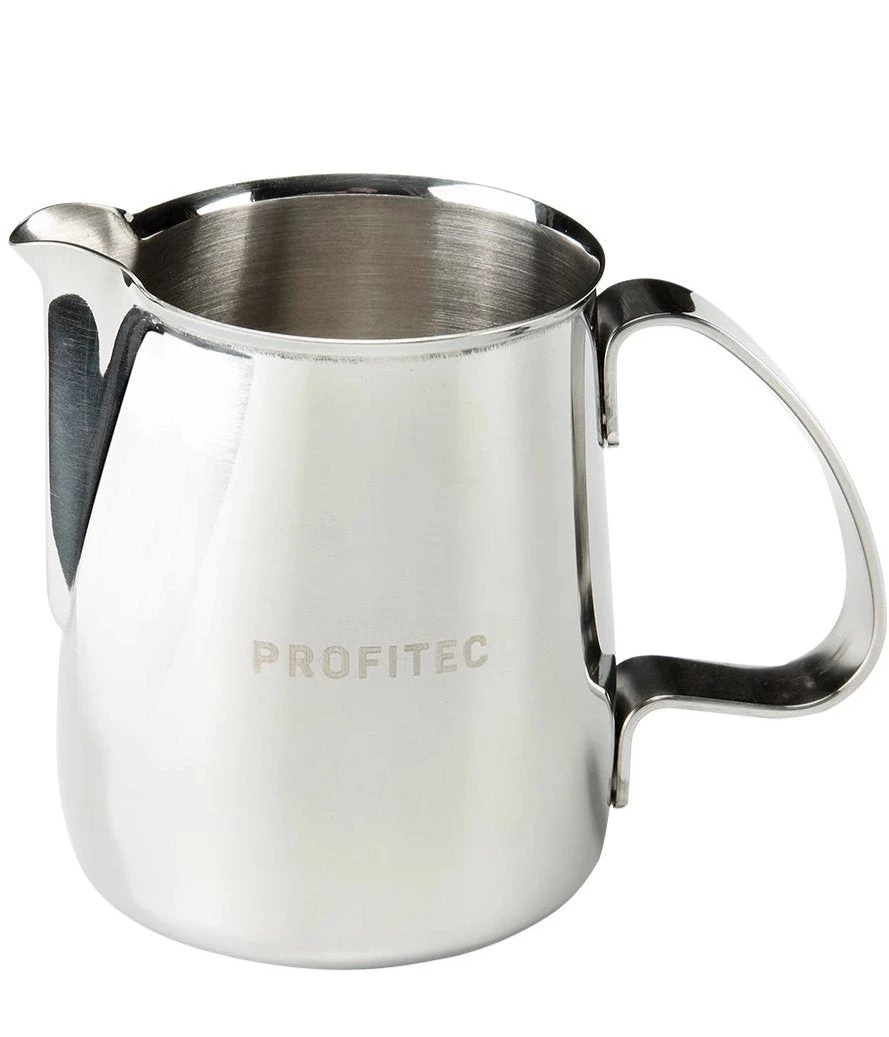 The stainless steel Pro Milk Pitchers are available in two sizes: 350ml and 500ml.